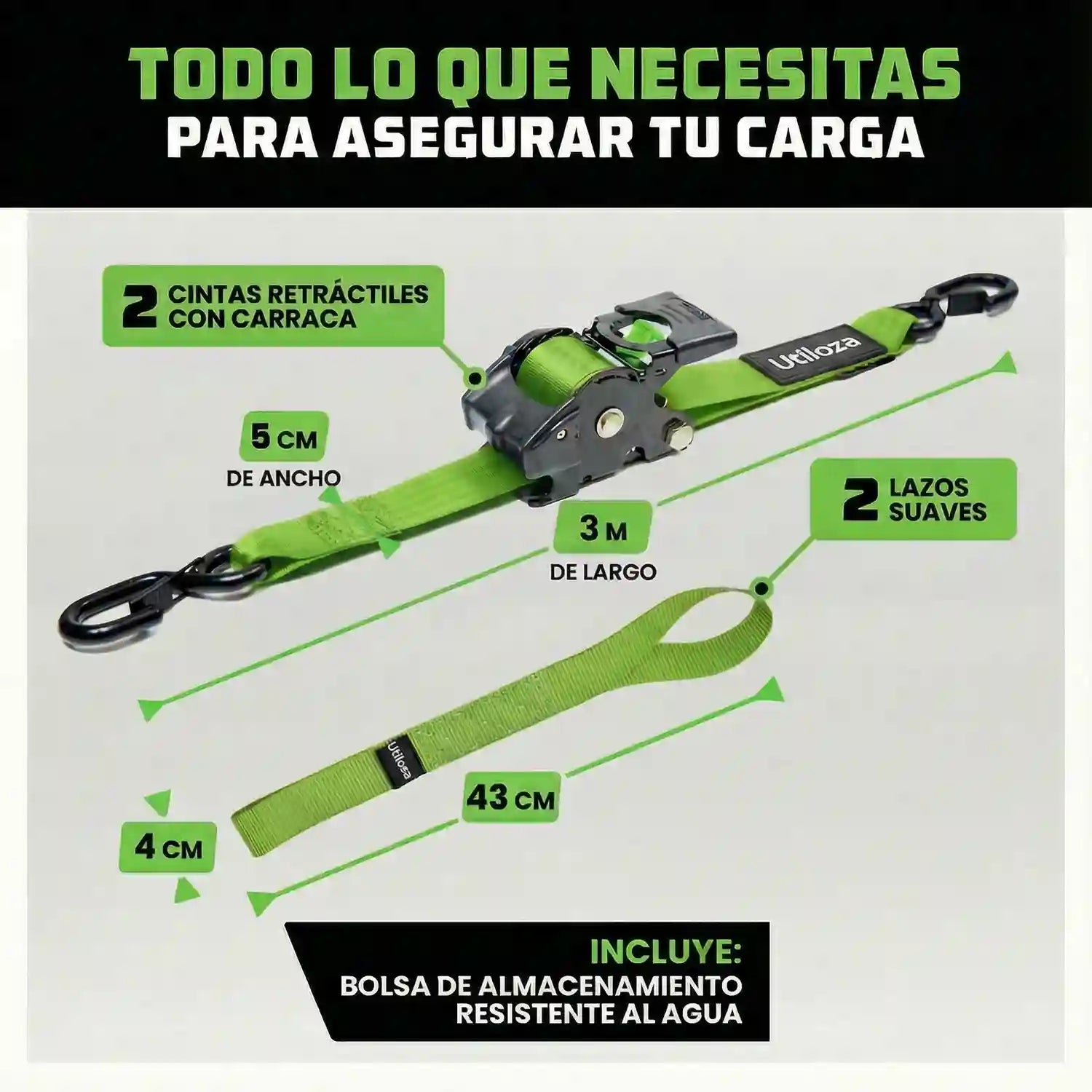 • 2 × AutoGrip™ Retractable Ratchet Strap